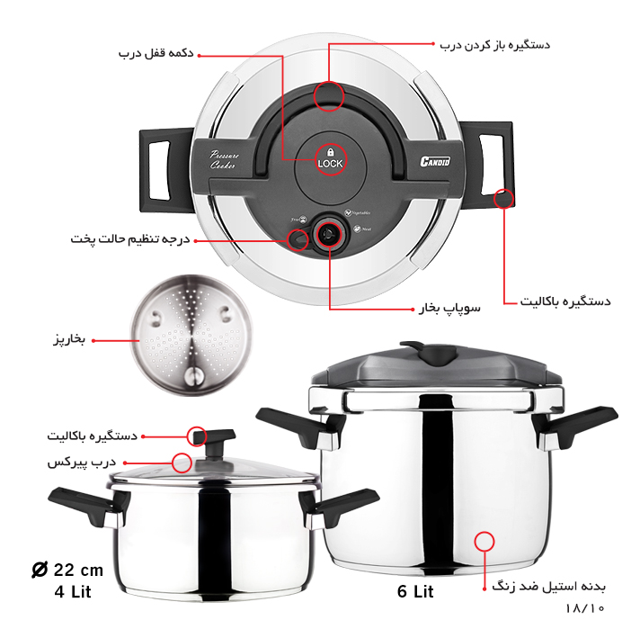 . دارای 3 سوپاپ (قفل ایمنی و تخلیه بخار) و سوپاپ اطمینان